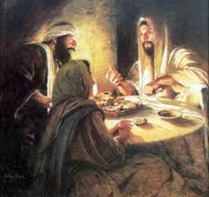 "E lá chegando, e pondo-se à mesa, então lhes repartiu o Pão, e os dois O reconheceram neste gesto"
